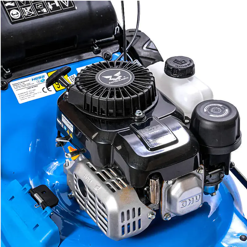 Задние колеса больше в диаметре, по сравнению с передними. Это облегчает прохождение газонокосилки по участку с неровностями или небольшими ямами. Управление упрощает и самоходный тип перемещения. Вам не придется толкать газонокосилку по участку самостоятельно, достаточно задавать направление движения с помощью держателя.