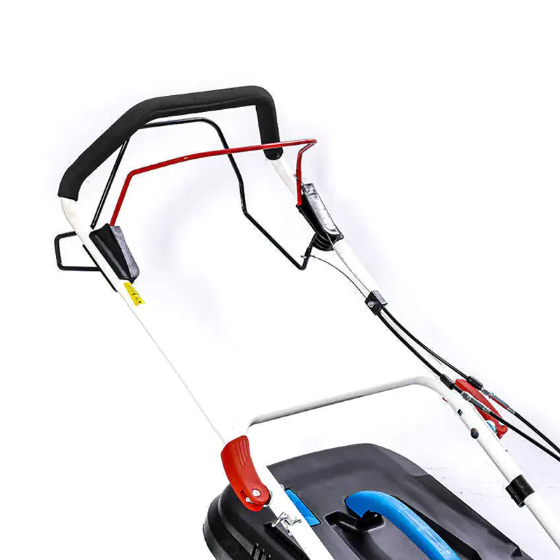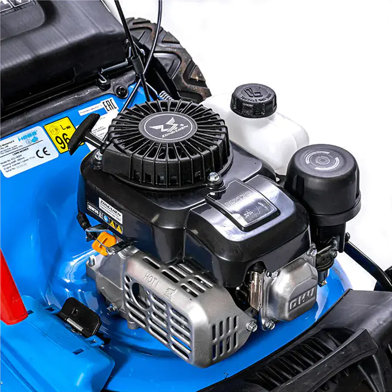 Задние колеса больше в диаметре, по сравнению с передними. Это облегчает прохождение газонокосилки по участку с неровностями или небольшими ямами. Управление упрощает и самоходный тип перемещения. Вам не придется толкать газонокосилку по участку самостоятельно, достаточно задавать направление движения с помощью держателя.