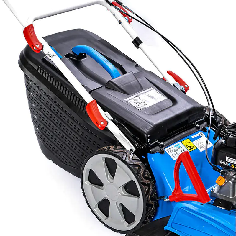 Бензиновая газонная косилка поддерживает 3 режима работы: сбор растительности в травосборник, боковой выброс и мульчирование. На небольших участках удобно применять сборник для травы. С ним удобно работать т.к. не придется убирать обрезки растительности с участка после использования газонокосилки. При этом большая вместительность травосборника обеспечит продолжительную работу без остановок.