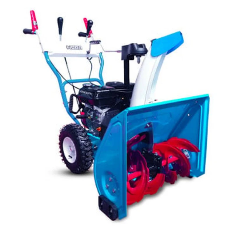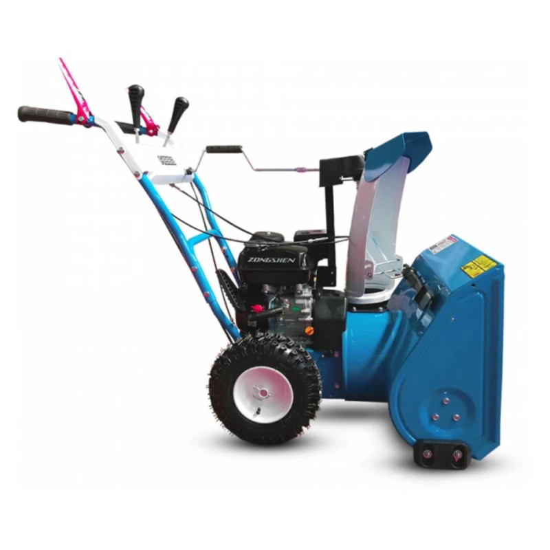 Бензиновый снегоуборщик Нева KCM24-F предназначен для уборки приусадебной территории, а также небольших стоянок и парковок. Благодаря наличию металлического зубчатого шнека изделие эффективно справляется как со свежевыпавшим, так и подмерзшим снегом. Снегоуборщик захватывает снежную массу высотой до 51см и отбрасывает ее на расстояние 11 метров. Высота выброса снега регулируется на желобе выброса снега. За один проход изделие убирает снежную полосу шириной в 61см. На снегоуборщике «НЕВА» KCM24D-F установлен бензиновый двигатель Zongshen мощностью 7л.с. Двигатель запускается вручную. Снегоуборщик имеет 4 передачи вперед и 1 назад, что позволяет подобрать подходящий режим работы. Все рычаги управления расположены на панели, установленной в верхней части руля, поэтому переключение передач производится легко и быстро. Снегоуборщик «НЕВА» KCM24-F является самоходным, отличается маневренностью и проходимостью. Изделие легко перемещается по заснеженной и обледенелой поверхности благодаря функции самоходности. Шины снегоуборщика обеспечивают надежное сцепление с обледеневшей поверхностью благодаря наличию крупного рисунка протектора.
