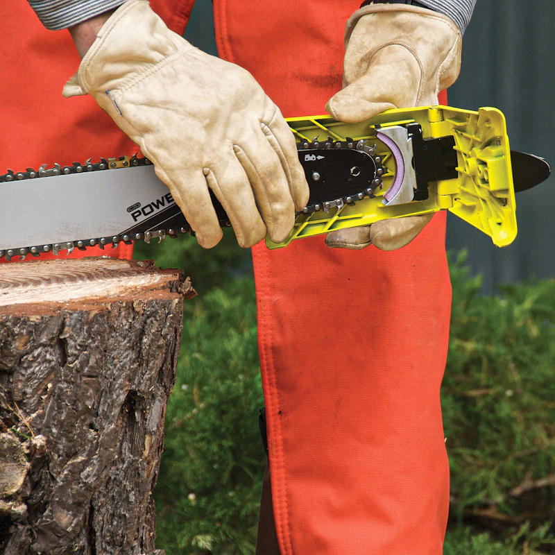 Вам не придется напрямую контактировать с режущей частью для натяжения пильной цепи. Не понадобится применять ключ и отвертку. Достаточно повернуть боковой регулятор, чтобы в одно движение руки подтянуть цепь.