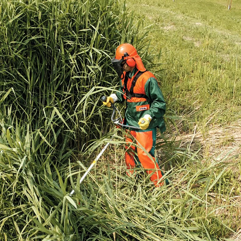 Бензокоса Oleo-Mac SPARTA 38 профессионального класса выдерживает высокие нагрузки при интенсивном использовании. Такие особенности конструкции, как прямая алюминиевая штанга, двигатель мощностью 2,2 л.с. и частота вращения вала до 8500 об/мин, обеспечивают высокую производительность косьбы. Мототриммер легко справляется с очисткой территории от густых сорняков, бурьяна и поросли кустарников. Ширина скашивания леской составляет 380 мм, ножом — 255 мм.