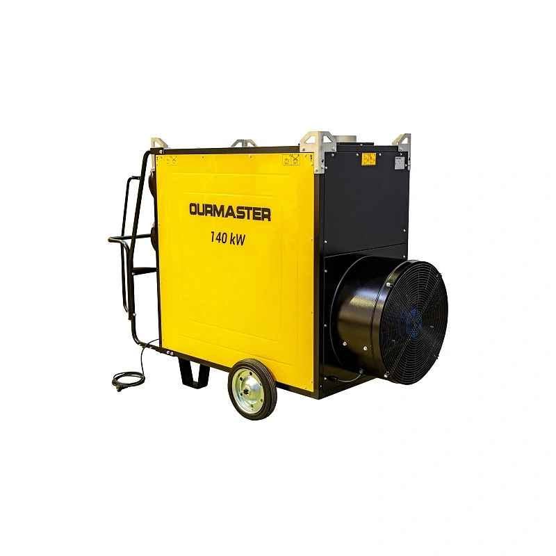 Промышленная дизельная тепловая пушка OUROURMASTER DV 470 - современная система для воздушного обогрева крупных площадей. Мощность теплообменника 140 кВт, а потребление электричества примерно 2 кВт. Подключение к сети необходимо для активации электронных систем и работы осевого вентилятора, а основная тепловая генерация осуществляется за счет процесса горения дизельного топлива. Производительность по воздуху составляет 8500 м3 за час.
