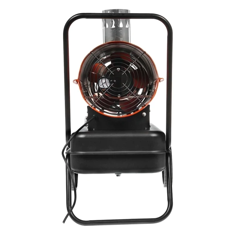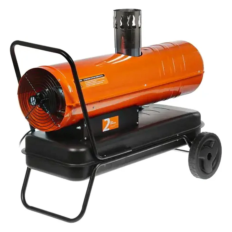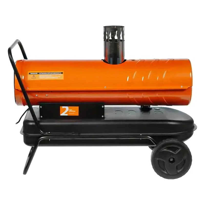 Нагреватель оборудован манометром для отслеживания давления нагнетания воздуха. Значение можно изменять при помощи регулировочного винта во время работы устройства. Тепловую пушку удобно перемещать благодаря наличию колес и высокой ручки.