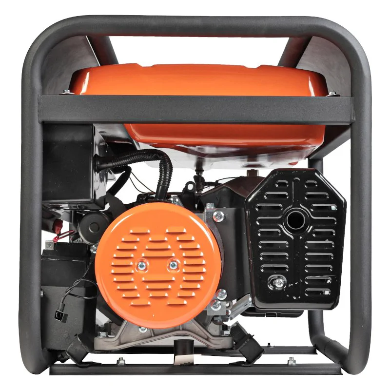 Металлическая рама, которая обнесена по всему корпусу, защищает генератор от механических повреждений. Её боковые части используются в качестве держателей.