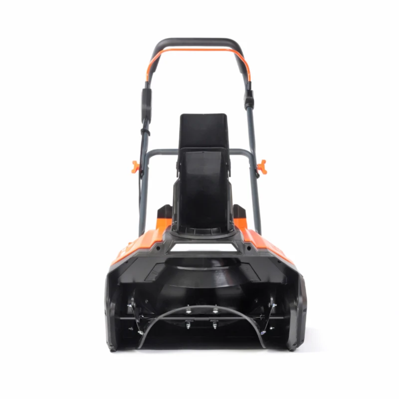 Одноступенчатый резино-металлический шнек (диаметр 17 см) и удобный ковш (ширина 50 см). В передней части снегоуборщика расположены две светодиодные фары. Колеса диаметром 19 см эффективны для эксплуатации на ровных поверхностях. Небольшие габариты и малый вес (23 кг). Дальность выброса снега до 6 метров.