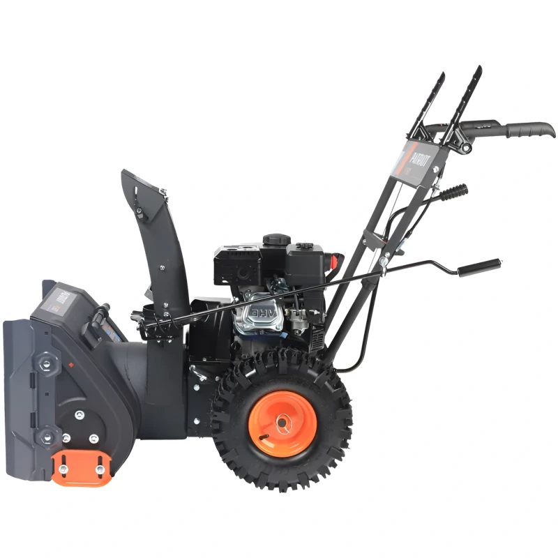 Оборудование подходит для использования на участках с неровной поверхностью. Показатели высоты и ширины захвата гарантируют, что за один ход снегоуборочная машина обработает достаточную площадь. Благодаря этому повышается скорость проведения работ. Элементы управления находятся на рукоятках.
