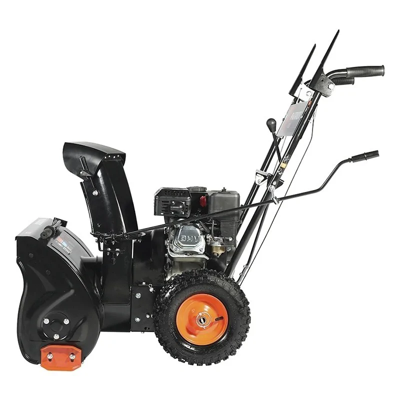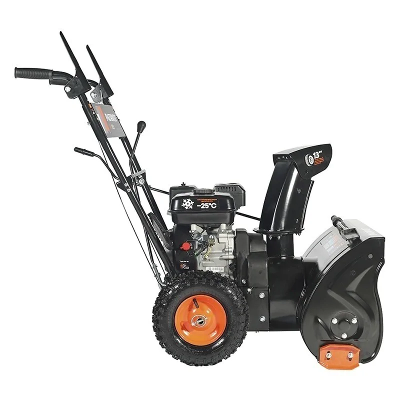 8-ступенчатая коробка передач позволяет адаптировать бензиновый снегоочиститель под конкретные условия работы и скорость уборки. Высота захвата составляет 52 см, что подходит для чистки глубокого снега. При необходимости можно увеличить или уменьшить обороты двигателя с помощью рычажка на корпусе. Функция поможет ускорить процесс уборки или снизить потребление бензина.