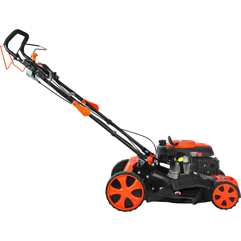 Корпус и режущая дека бензиновой газонной косилки изготовлены из прочной стали. Благодаря этому машина надежно защищена от внутренних повреждений в случае попадания мелких камней в лезвие.