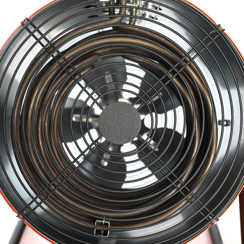 Для исключения перегрева в электрической теплопушке предусмотрена система принудительного охлаждения. Функция работает с помощью автоматической задержки выключения вентилятора. За счет этого безопасное отключение пушки происходит в течении 1-2 мин.