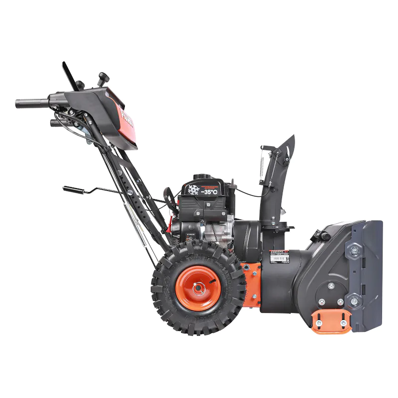 Все элементы управления расположены на операторской панели. Благодаря этому вы можете настраивать работу снегоуборочной машины одной рукой. Например, задавать скорость движения или регулировать дальность выброса снега. Снегоуборщик движется за счет трансмиссии, поэтому уборка территории не потребует от вас много сил. На ваш выбор есть 6 скоростей вперед и 2 назад.