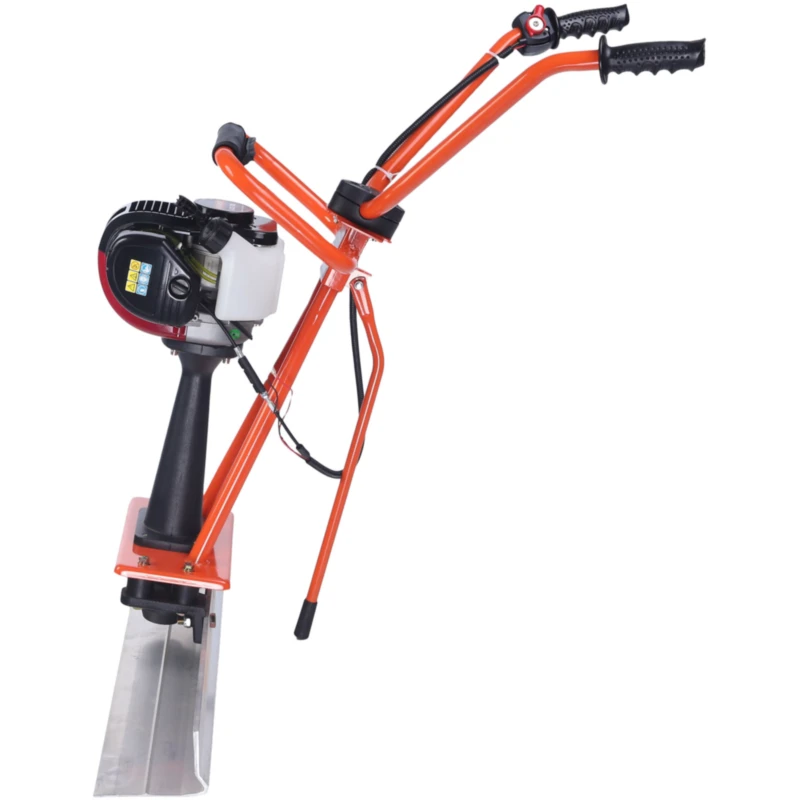 Профиль из легкого алюминиевого сплава оптимальной гладкой формы обеспечивает гладкое скольжение по бетону. Корпус из прочной нержавеющей стали устойчив к коррозии. Регулируемые по высоте прорезиненные рукоятки для простого управления устройством. Складная подножка надежно закрепляет устройство, не давая ему сдвинуться с места. Ручка с тканевой вставкой для удобства переноски.