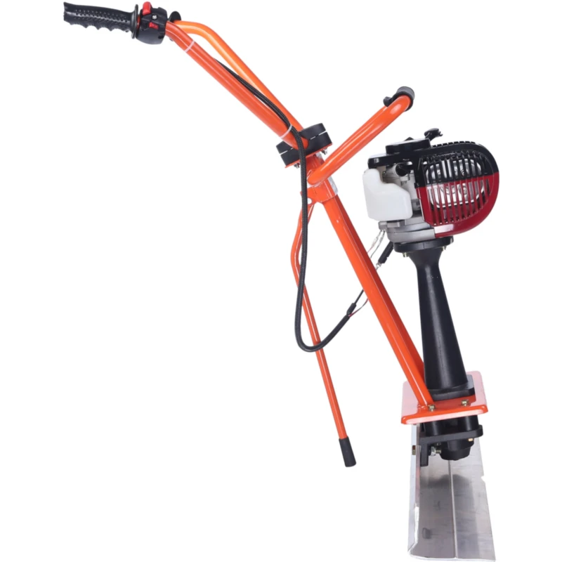 Работает от четырехтактного двигателя мощностью 1 л.с. и объемом 31 см³, который подходит для интенсивной эксплуатации. Аварийный выключатель позволяет мгновенно остановить машину.