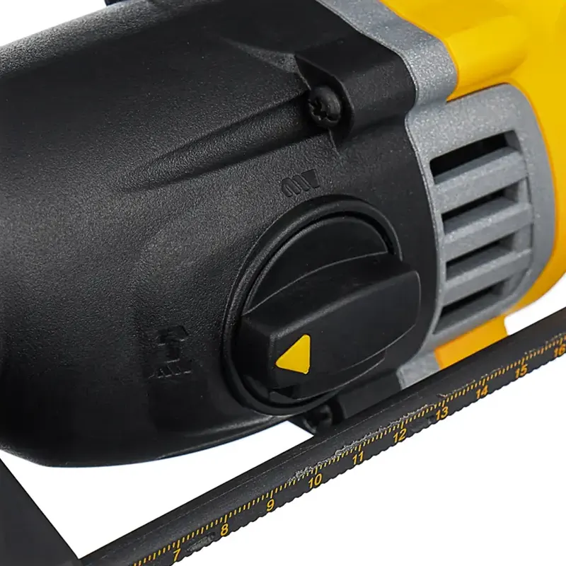 Инструмент DeWALT D25143K оснащен муфтой, которая предохраняет от травм при заклинивании сверла. При возникновении аварийной ситуации двигатель отключается.