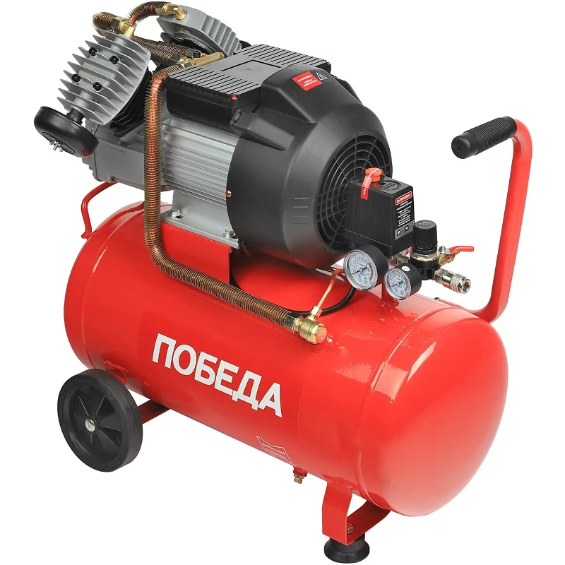 Масляный компрессор Победа служит для снабжения сжатым атмосферным воздухом различных пневмоинструментов: гайковертов, дрелей, шлифмашин и т.д. Ресивер объемом 50 л обеспечивает длительную бесперебойную работу. Давление 8 бар и производительность 400 л/мин позволяют выполнять большие объемы работ. Для постоянного контроля давления предусмотрено два манометра на входе и выходе.