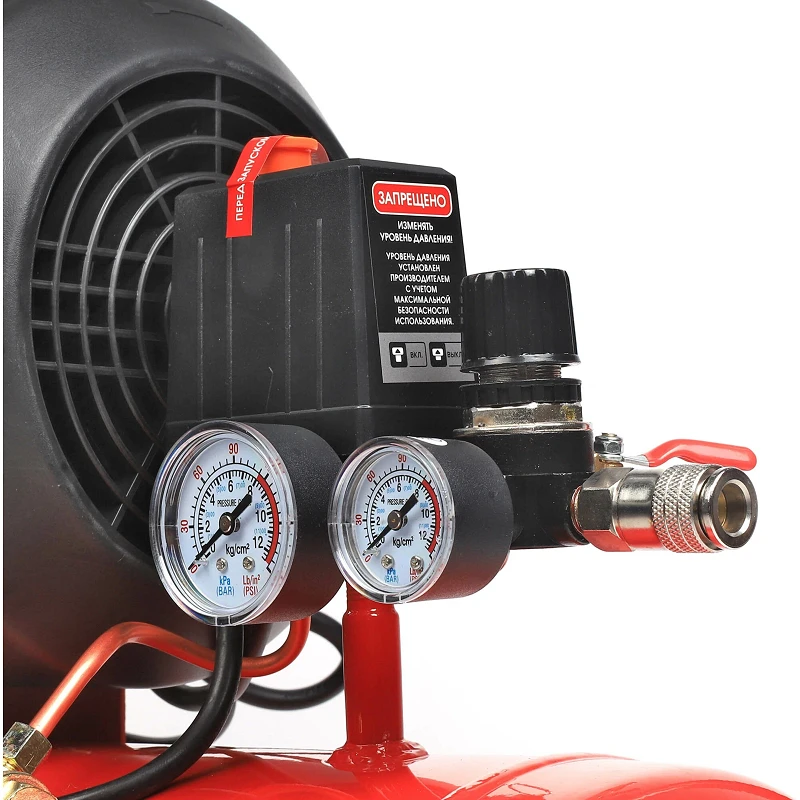 Уборный контроль за уровнем масла позволяет вовремя отслеживать его остаток. Для удаления конденсата предусмотрен специальный клапан, что снижает вероятность коррозии в баке и продлевает срок службы агрегата.