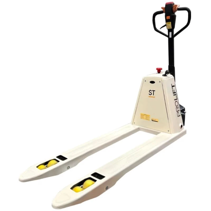 Самоходная тележка с гидравлическим подъемом вил PROLIFT ST20L подходит для работ при средней нагрузке на складах, торговых площадях, производствах, в магазинах. Способна перевозить груз массой до 2000 кг. По принципу работы не отличается от обычных гидравлических тележек, однако имеет электродвигатель с приводом на рулевое колесо, работающий от тягового литиевого аккумулятора емкостью 20 Ач. Не требуя физических усилий для передвижения со стороны оператора, тележка развивает скорость до 4,5 км/ч, значительно снижает нагрузку и ускоряет работу сотрудников, повышая эффективность их труда. Тележка подходит для работы с нестандартным типом паллет и крупногабаритными грузами.