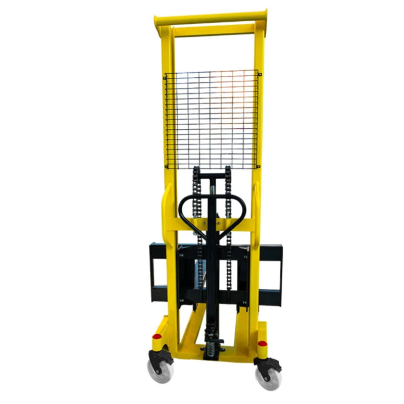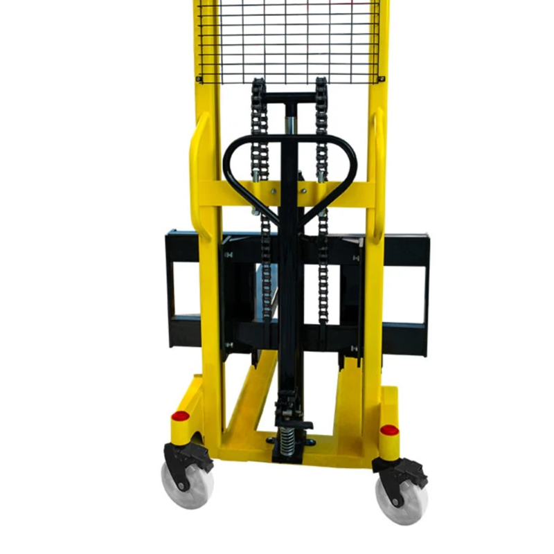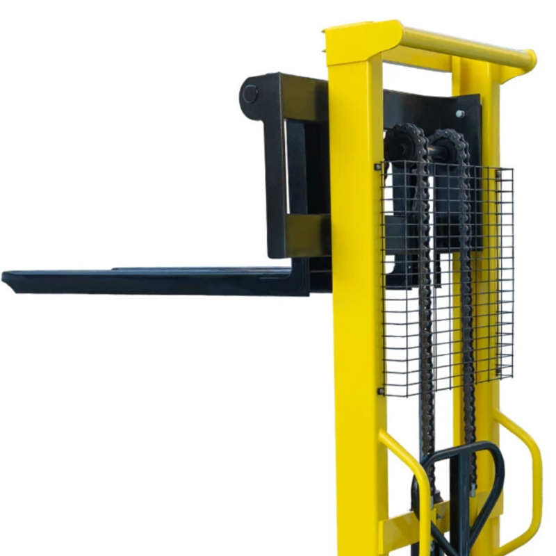 С заботой о безопасности оператора, на штабелере установлен защитный решетчатый экран. С целью повышения комфорта работы, на штабелере установлены раздвижные вилы, позволяющие работать с нестандартными поддонами и негабаритными грузами. Регулировка роликов каретки и натяжения цепей позволяет сократить износ и продлить срок эксплуатации штабелера.