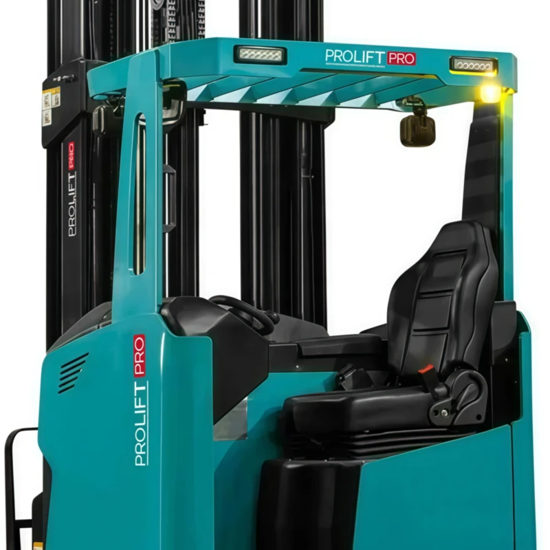 Ричтрак PROLIFT PRO RV 20100 – электрическая складская машина, рассчитанная на работу с тяжелыми палетированными грузами. Модель грузоподъемностью 2000 кг оснащена выдвижной телескопической мачтой и поднимает грузы на высоту до 11 метров. Оператор работает сидя, управление выведено на эргономичную панель с джойстиком.