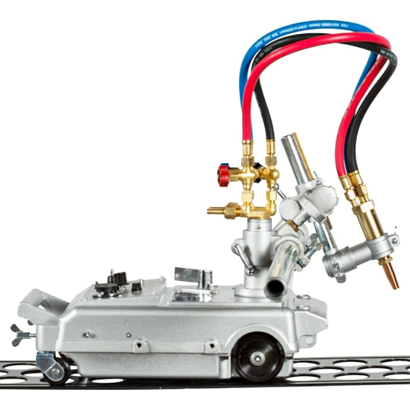 Машина термической резки ПТК CG-30 значительно повышает производительность работ по раскрою листового металла и формованного проката. Благодаря направляющим рельсам инструмент выполняет аккуратные прямые резы толщиной до 100 мм. С помощью циркульного устройства можно резать материал по кругу диаметром от 200 до 2000 мм. В качестве рабочего газа используется пропан/ацетилен. Газорезательная машина ПТК работает от однофазной сети напряжением 220 В. За счет электрического привода скорость реза составляет 50–750 мм/мин.