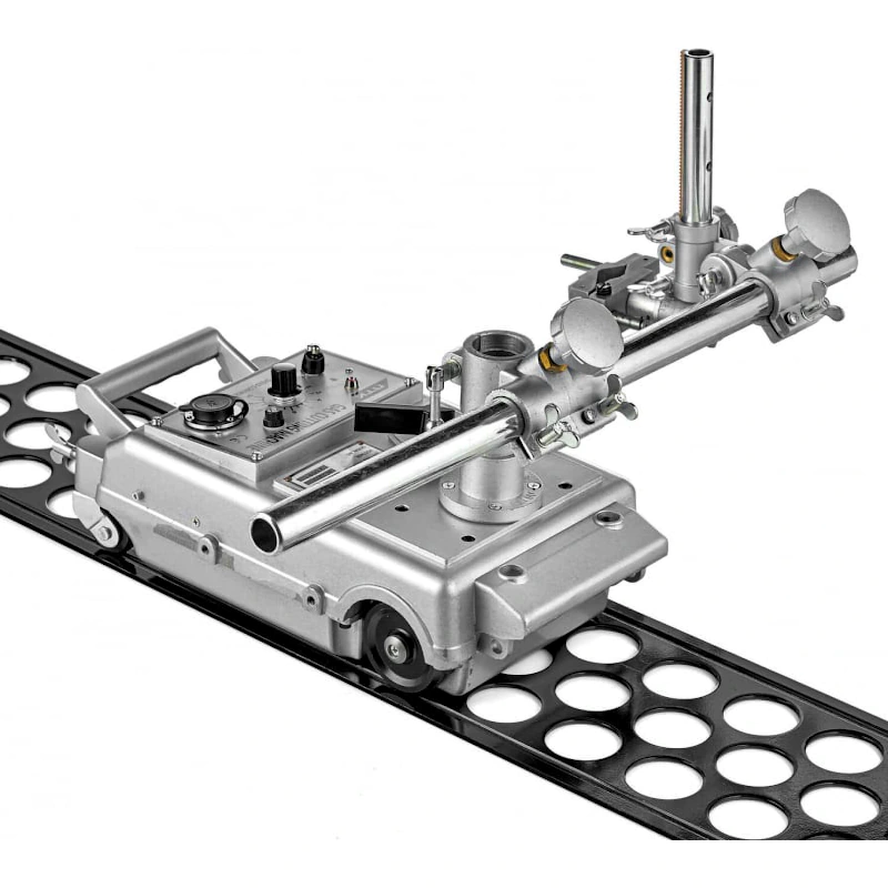 Машина оснащена электрическим приводом, скорость реза 50—5000 мм/мин. Для удобного и точного перемещения машины по листу в комплект входит направляющий рельс.