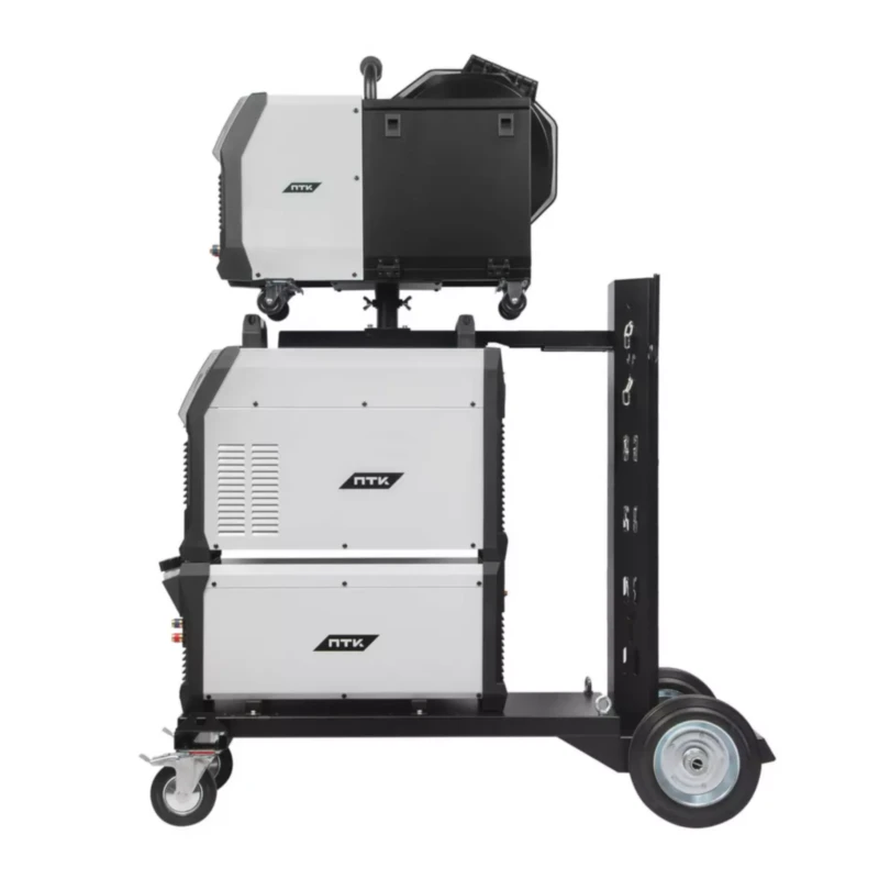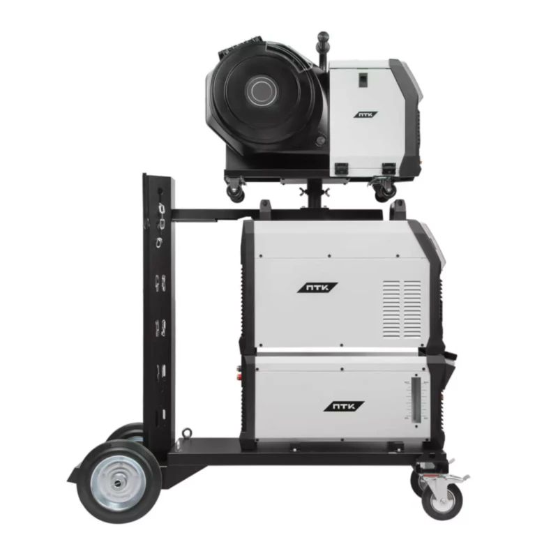 Оборудование поставляется в комплекте с тележкой для перемещения аппарата, подающего механизма, блока жидкостного охлаждения и баллона с защитным газом. Тележка обладает надежной усиленной конструкцией, где толщина металла около 3 мм.