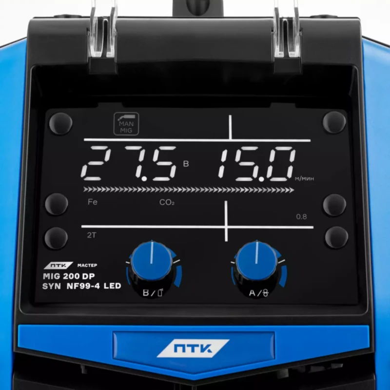 ПТК МАСТЕР MIG 200 DP SYN NF 99-4 LED — это обновленный сварочный полуавтомат из линейки МАСТЕР NF. Новая модель поставляется со светодиодным LED экраном управления сварочным процессом. LED экран ярко и качественно передает все сварочные настройки, обладает высокой защитой оборудования от пыли, грязи и влаги.