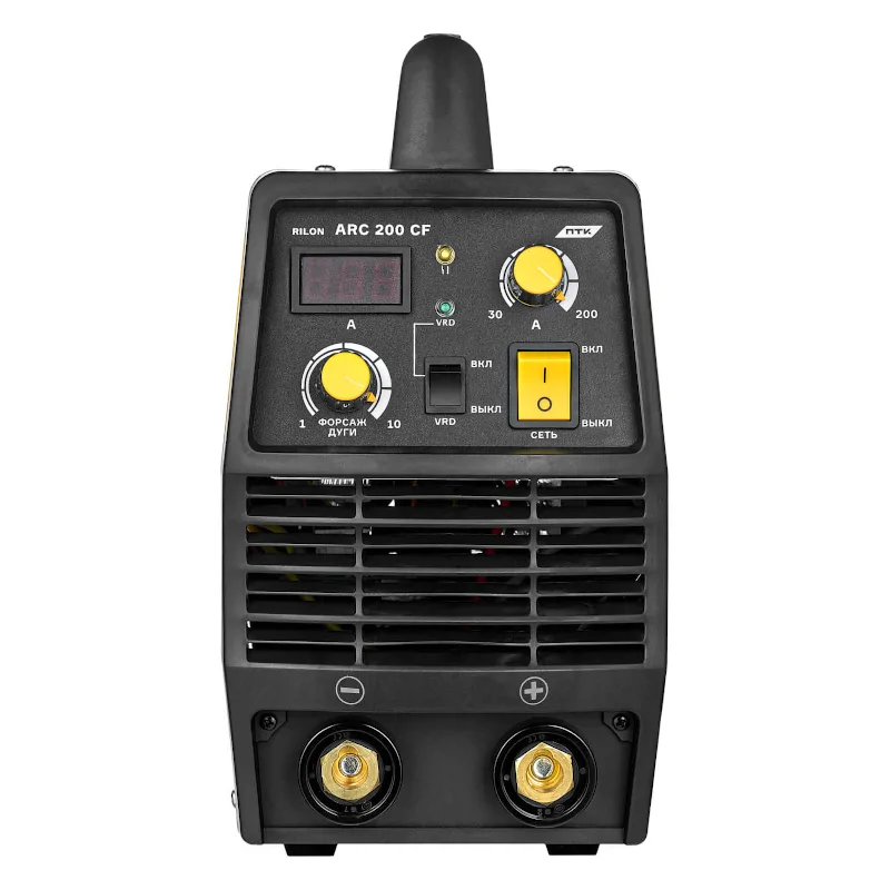 Функция VRD обеспечивает безопасность сварщика за счет снижения напряжения до минимального значения при замыкании сети. Сварочный инвертор ПТК RILON ARC 200 CF НАКС оснащен датчиком температуры с индикатором перегрева. В случае превышения допустимого уровня нагрева срабатывает системы защиты, которая запускает вентилятор и отключает устройство во избежание его поломки. После остывания и стабилизации температуры аппарат автоматически возобновляет работу.