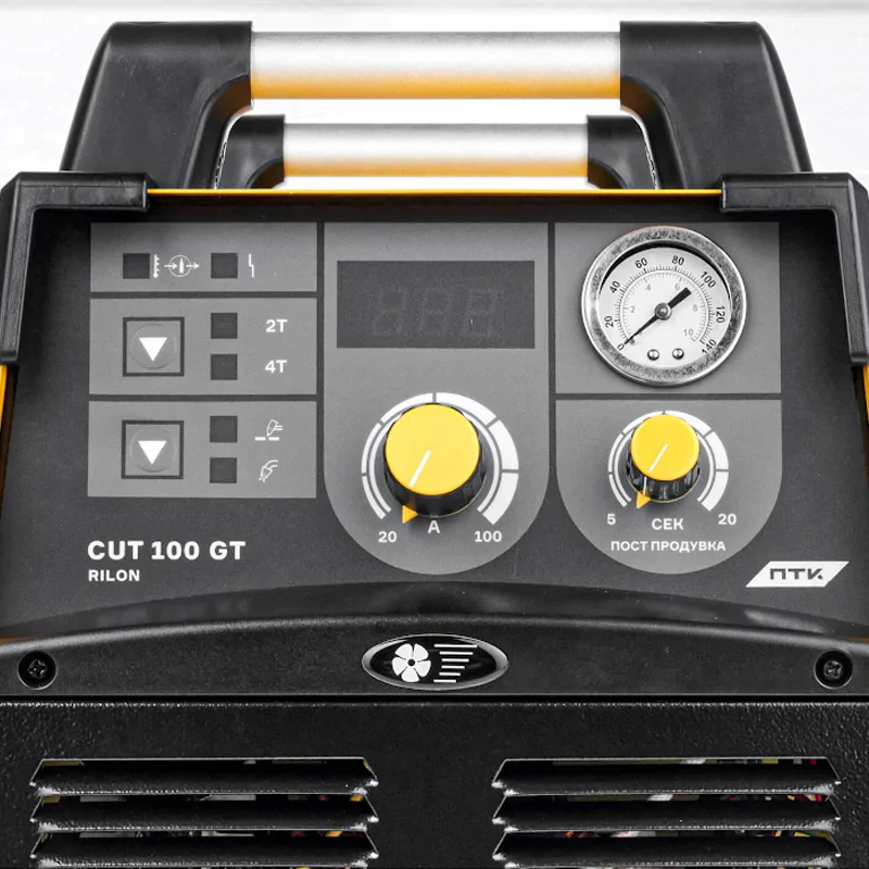 Бесконтактный поджиг дуги с высокочастотным управлением упрощает работу и увеличивает скорость резки. Инвертор обеспечит качественный тонкий рез, отсутствие деформации и коробления металла. Возможно переключение режимов работы плазменного резака - 2Т/4Т. Это обеспечивает удобство при выполнении коротких и длинных резов. Постпродувка газа увеличивает срок службы плазменного резака и его комплектующих.