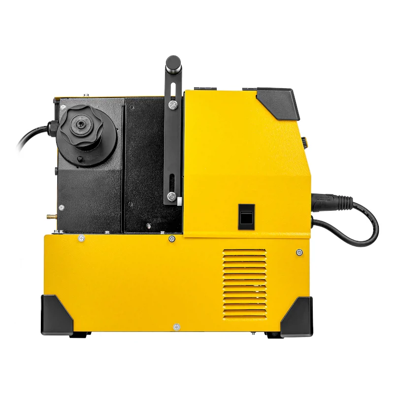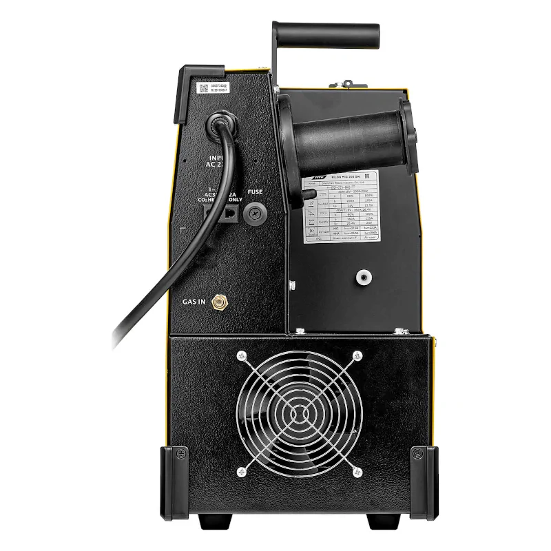 Этот инверторный сварочный полуавтомат MIG/MAG питается от обычной бытовой электросети и способен работать даже при колебаниях напряжения до ±15%. Кнопочная панель управления и дисплей дают возможность выбрать различные методы сварки, настроить параметры сварочной горелки, установить уровень напряжения и индуктивности, а также регулировать силу тока в пределах 40-200 А.
