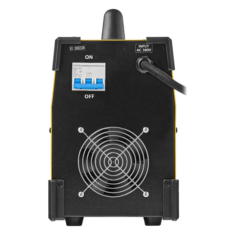 Управление аппаратом выполняется с помощью регуляторов на передней панели или с подключенного пульта ДУ на расстоянии до 20 м. Светодиодный индикатор сигнализирует о неисправности. На цифровом дисплее отображаются текущие настройки сварочного процесса. Вы можете изменять ток сварки в зависимости от толщины металла и диаметра электрода. Отдельные два регулятора отвечают за установку значений для функций горячего старта и форсажа дуги. Это позволяет максимально точно настроить сварочный инвертор ММА ПТК под конкретную задачу и условия эксплуатации. Функция VRD обеспечивает безопасность сварщика за счет снижения напряжения до минимального значения при замыкании сети или в условиях повышенной влажности.