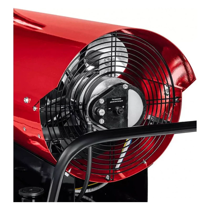 На передней части корпуса установлен отражающий экран, который не позволяет пламени вырваться наружу. Камера сгорания выполнена из жаропрочной стали, она выдерживает температуру до 1100 ⁰С. Транспортировочные колеса и удобная рукоятка облегчают перемещение установки.
