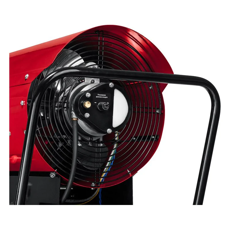 В тепловой пушке есть вентилятор мощностью 300 Вт. Создаваемый воздушный поток быстро распространяет тепло по помещению.