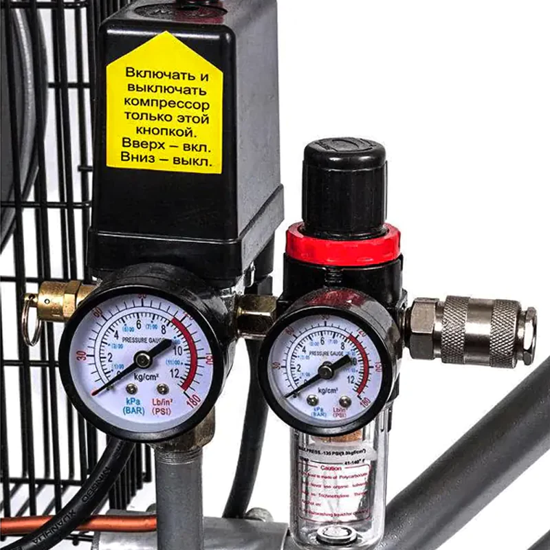 Следить за давлением на входе и выходе помогают манометры. В случае перебоев с электропитанием компрессор автоматически перезапустится после восстановления подачи тока.