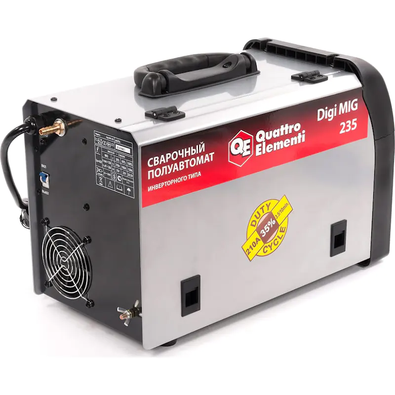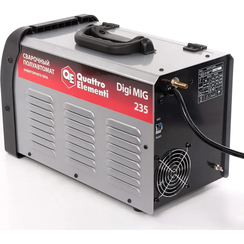 Инверторный аппарат полуавтоматической сварки QUATTRO ELEMENTI Digi MIG 235 используют небольшие производственные компании и частные мастерские. Сварка производится проволкой в среде защитного газа и без него. Инвертор характеризуется небольшими размерами и малым весом, что делает его высокомобильным аппаратом. Использование биполярных транзисторов и инновационной схемотехники обеспечило модели длительный срок работы, надежность деталей и высокую мощность - 5.7 кВт. Включается в однофазную бытовую сеть напряжением 220 В частотой 50 Гц.