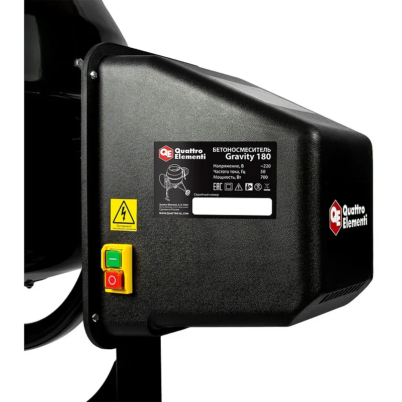 Бетоносмеситель Quattro Elementi Gravity 180 имеет вместительность 180 литров, что позволяет смешивать большие объемы бетонной смеси. Он оснащен мощным двигателем, который обеспечивает надежную работу и высокую производительность. Компактные размеры и колеса позволяют легко перемещать бетоносмеситель по строительной площадке.