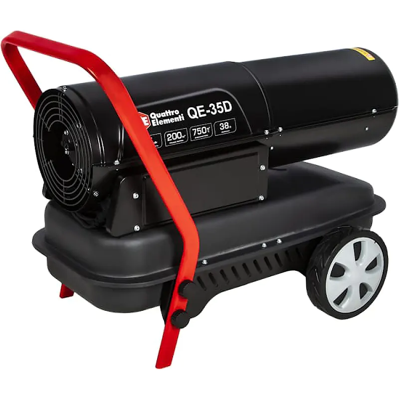 Тепловая пушка дизельная Quattro Elementi QE- 35D применяется для обогрева помещений промышленного, торгового, складского назначения. Их объем может составлять до 200 м3. У этой тепловой пушки значительная мощность – до 35 кВт.