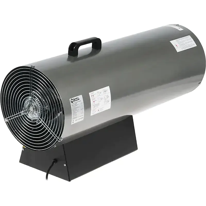 - Принцип действия основан на прохождении воздушного потока через нагревательный элемент, использующий энергию сгорания газа пропан или бутан.