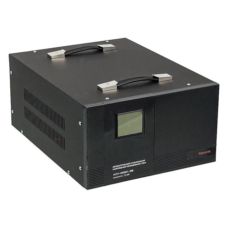 Однофазный стабилизатор напряжения РЕСАНТА АСН-12000/1-ЭМ подходит для работы с высокоточными и измерительными приборами, а также техникой с электродвигателем. Он поможет решить проблему постоянно низкого или высокого напряжения в сети.