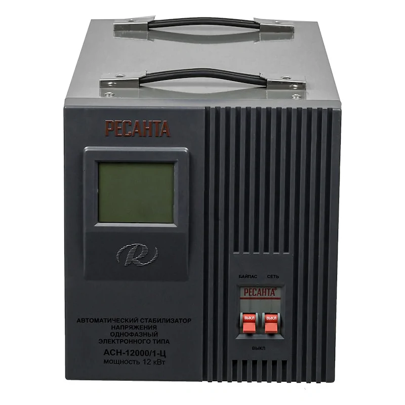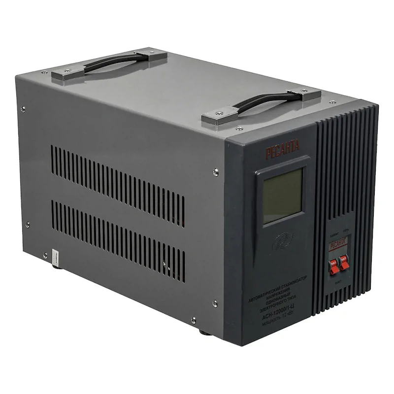 Однофазный стабилизатор напряжения электронного типа РЕСАНТА АСН-12000/1-Ц применяется для защиты производственных и бытовых электрических устройств от повреждений из-за нестабильной работы однофазной электросети. Мощности в 12 кВт достаточно, чтобы обеспечить подачу электрического тока для квартиры, для частного дома, для дачи, для производственных и коммерческих объектов.