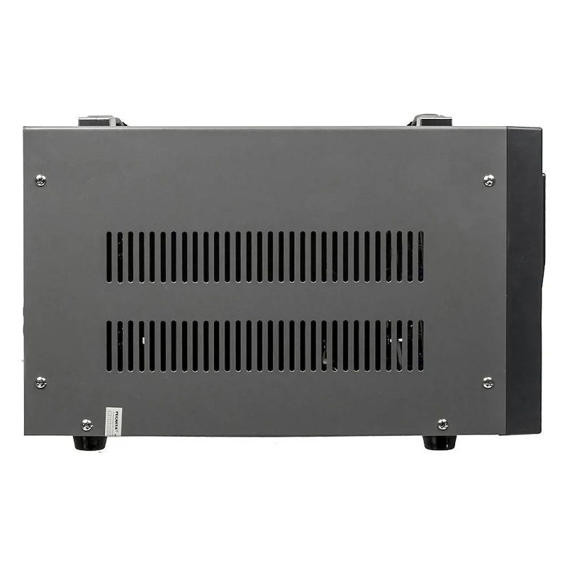 Однофазный стабилизатор энергии выполнен в корпусе, предназначенном для установки на столе или другой ровной поверхности. Имеются рукоятки для транспортировки и прорезиненные опоры в нижней части корпуса. Благодаря этому его легко транспортировать с места на место в зависимости от того, где расположено подключаемое оборудование.