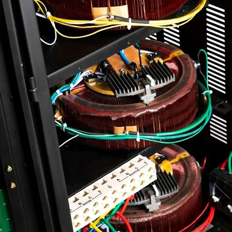 Прибор считывает напряжение с каждого витка катушки. Благодаря этому гарантируется максимально точная регулировка напряжения стабилизатором с погрешностью всего 2%.