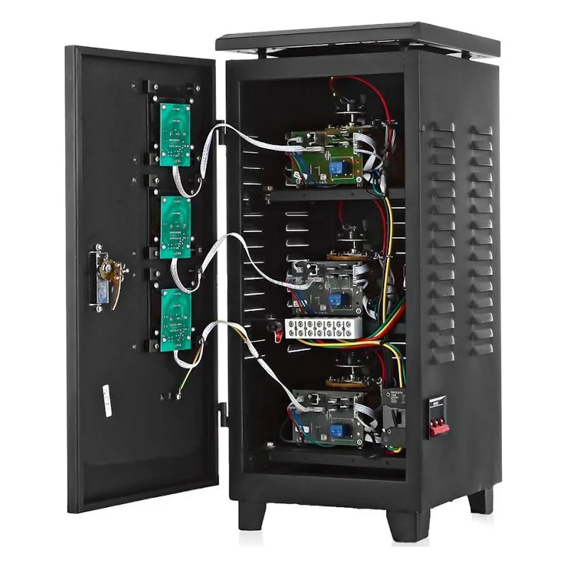 Стабилизатор напряжения поддерживает тип соединения клеммной колодки. Это упрощает подключение проводов в общую сеть.