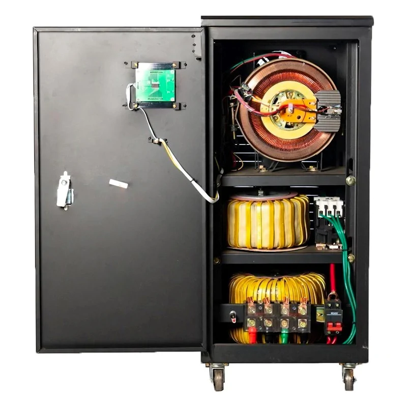 Аппарат компенсирует перепады в диапазоне от 140 до 260 В и поддерживает выходное напряжение в бытовой сети с точностью до ±2%. Он оснащен защитой от помех, перегрузки, короткого замыкания, а также термозащитой.