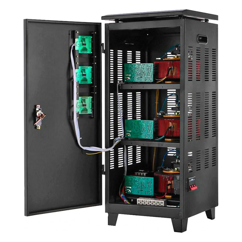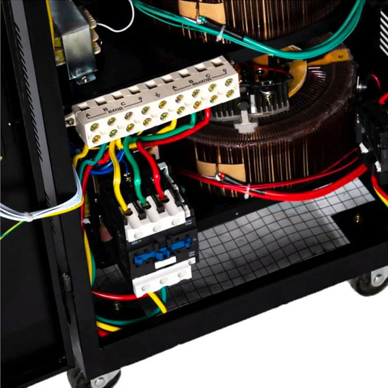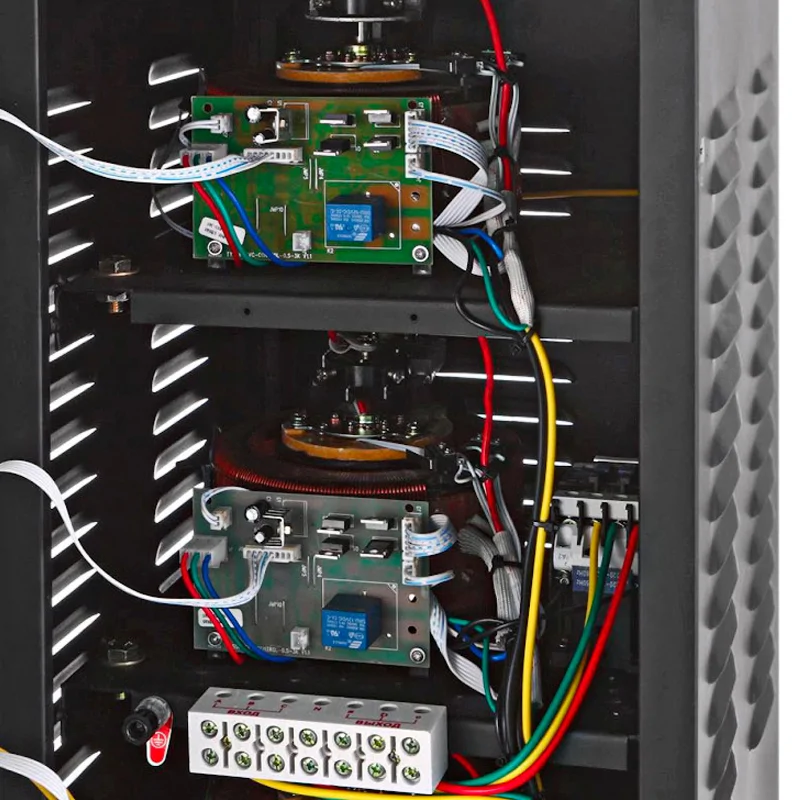 Стабилизатор электромеханического типа оснащен 3 дисплеями для отслеживания рабочих параметров. Для большего удобства на каждую фазу предусмотрен отдельный экран.