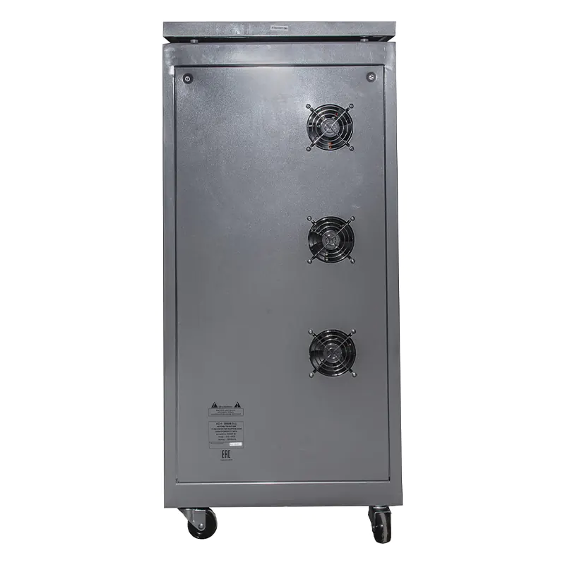 Трехфазный цифровой стабилизатор автоматически настраивает напряжение переключением обмоток на трансформаторе с помощью реле. Такое тип работы позволяет прибору быстро реагировать даже на небольшие изменения в электрической сети.