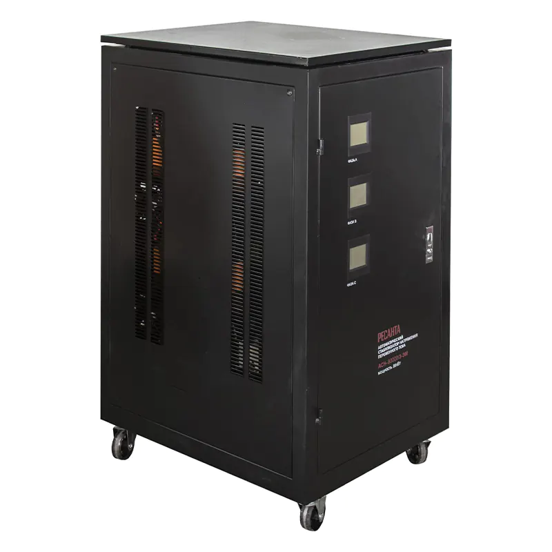Трехфазный стабилизатор РЕСАНТА АСН-80000/3-ЭМ электромеханического типа, который применяется для обеспечения стабильным электрическим питанием разных потребителей. Его установка целесообразна при необходимости защитить электроприборы от перегрузок и скачков напряжения, происходящих в сети.
