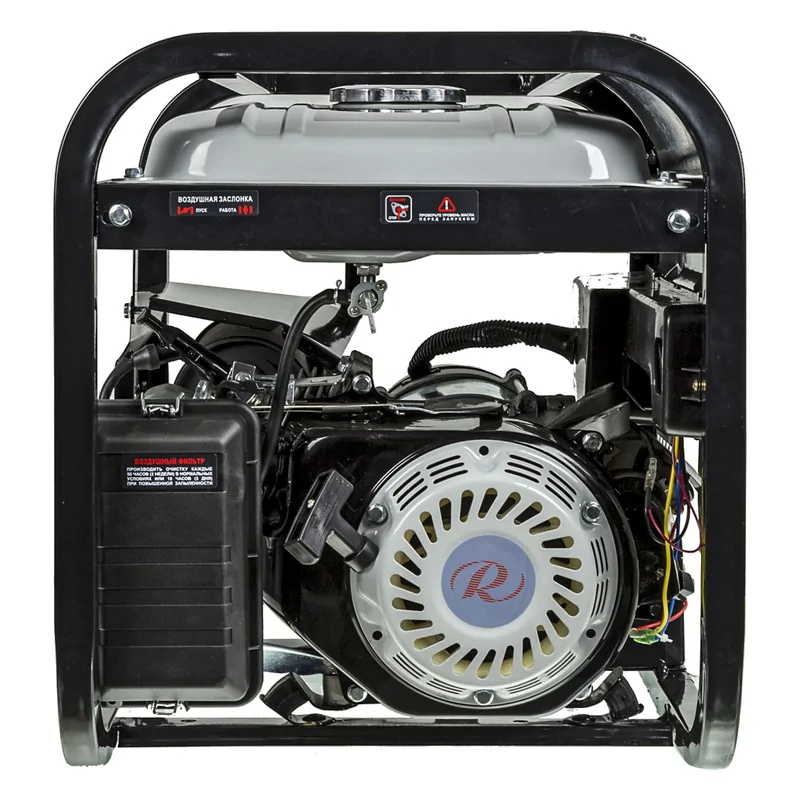 Поршень бензогенератора покрыт керамическим напылением. Благодаря этому исключается преждевременный износ, а также образование нагара при использовании низкокачественного топлива. Корпус оборудован 2 розетками на 16 А, которые позволяют подключать различные бытовые приборы.