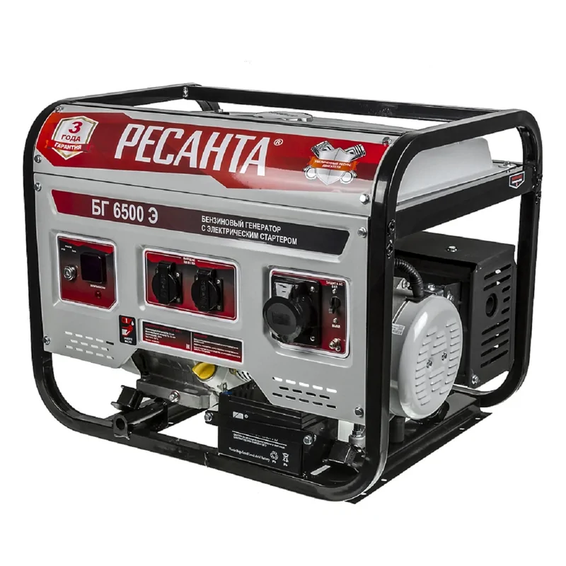 Электрогенератор РЕСАНТА БГ 6500 Э — устройство мощностью 5000 Вт для автономного снабжения электроэнергией жилищных и коммерческих объектов, например, магазинов и офисов.