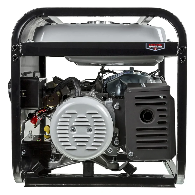 Поршень бензогенератора покрыт керамическим напылением. Благодаря этому исключается преждевременный износ, а также образование нагара при использовании низкокачественного топлива. Корпус оборудован 2 розетками на 16 А и одной на 32 А, которые позволяют подключать различные бытовые приборы.